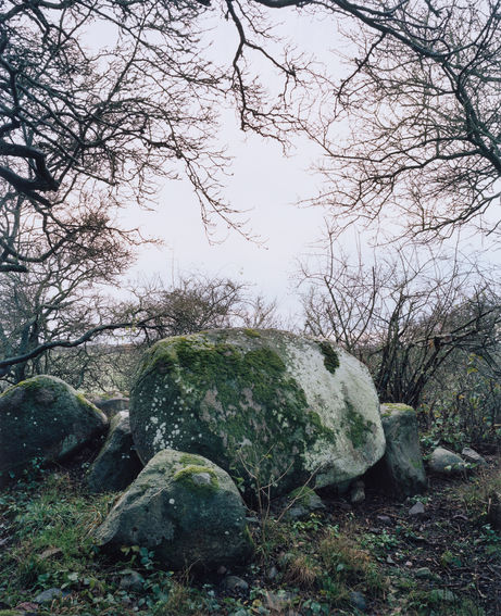 Bombenkrater, Teufelsstein. Die Titel von Henning Rogges jüngsten Serien benennen präzise worum es geht: Um die bis heute an verschiedenen Orten, in Wäldern und auf Brachflächen sichtbaren „offenen Wunden“ des Zweiten Weltkriegs in der einen, um sagenumwobene, mit Spuren einer teuflischen Begegnung versehene ungewöhnliche Steine in der zweiten. Mit den Teufelssteinen bewegt sich Rogge von den kreisrunden Löchern und Vertiefungen in der Landschaft, die die Bombenkrater ausmachen, hin zu Objekten, die skulptural in die Höhe ragen, sich aber ebenfalls größtenteils in ländlichen und bewaldeten Gebieten befinden. An die Stelle der zurückgebliebenen Leere tritt die geballte Materie – viele der so genannten Teufelssteine verfügen über ein derartiges Gewicht, dass sie weder versetzt werden können noch zerstörbar sind, einmal abgesehen von der abergläubischen Angst, die mit einem solchen Eingriff einhergehen würde.