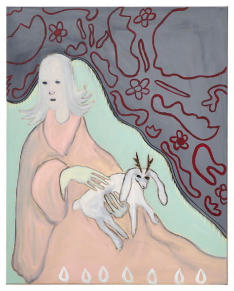 Using, among other materials, charcoal, pastel chalk, acrylic, oil and spray paint, Saccone creates uncanny yet enthralling paintings which blur the line between reality and transcendence. He remains consistently attached to figurative themes but combines them with an innovative, abstract twist, experimenting with flat, stylized surfaces, abstraction and planar constructions which deny our access at the same time as they draw us in. A similar paradox is true for Saccone’s use of color: It is likely not despite of but precisely because of their predominantly cool pastel tones – contrasted with almost cartoon-like black outlines – that the paintings urge us to linger and contemplate on their enigmatic motifs and the atmospheric visual spaces.